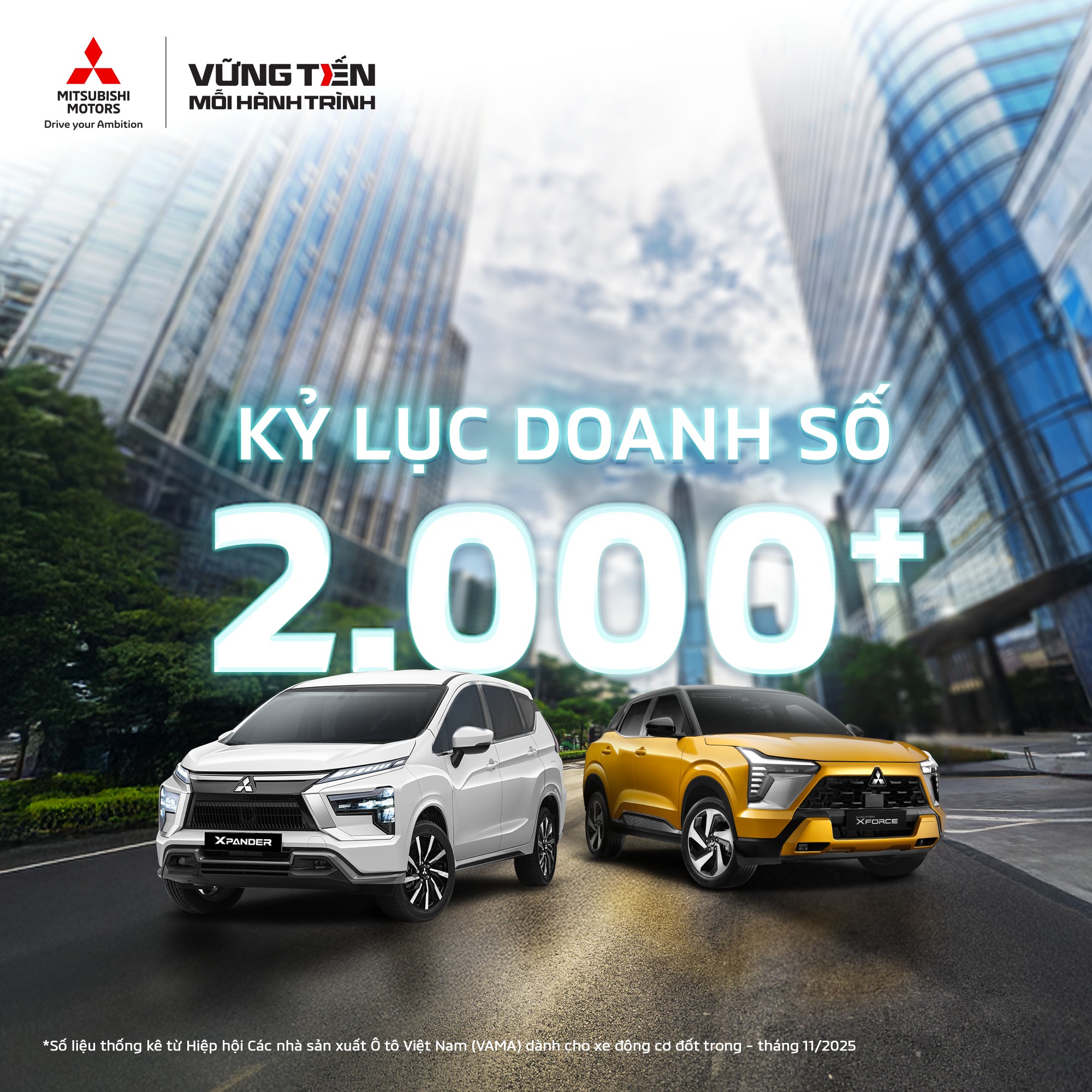 Mitsubishi Motors Việt Nam tự hào đánh dấu cột mốc ấn tượng khi Xpander và Xforce cùng vượt mốc hơn 2.000 xe bán ra trong tháng 11/2025*, chính thức trở thành 2 mẫu xe động cơ đốt trong bán chạy nhất toàn thị trường.