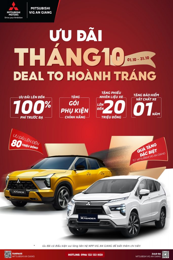 🚘 ƯU ĐÃI THÁNG 10 – DEAL TO, ƯU ĐÃI KHỦNG CÙNG MITSUBISHI VIG AN GIANG! 🚘