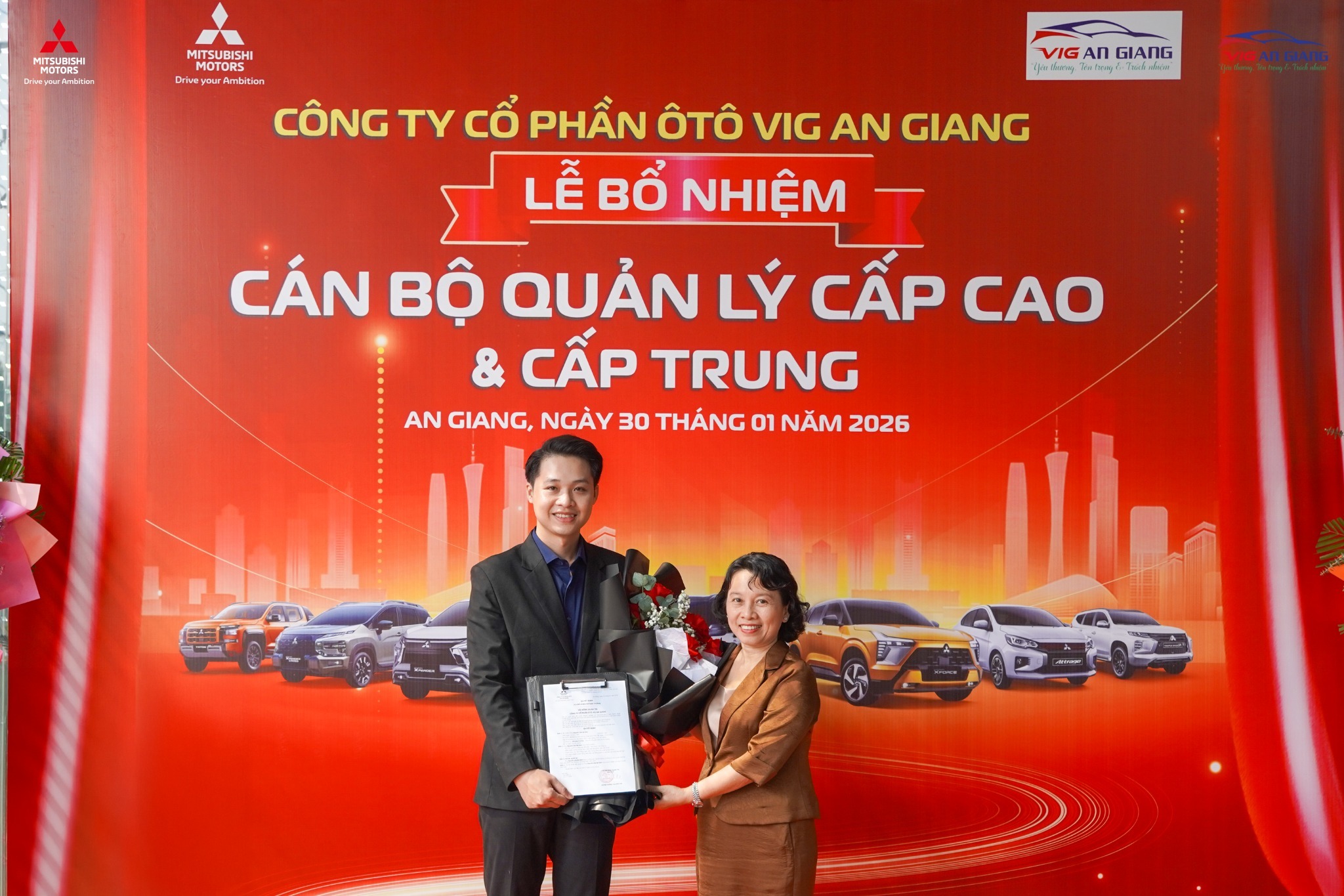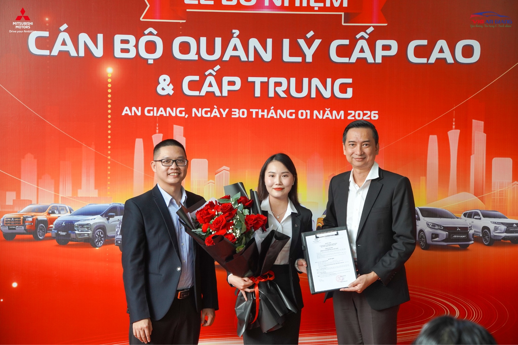 Ngày 30/01/2026, Công Ty Cổ Phần Ôtô VIG An Giang đã long trọng tổ chức Lễ Bổ nhiệm Cán bộ Quản lý cấp cao và cấp trung, đồng thời giới thiệu Bộ quy tắc ứng xử và ra mắt Logo mới của Công ty, đánh dấu một bước tiến quan trọng trong công tác kiện toàn bộ máy tổ chức và phát triển đội ngũ nhân sự nòng cốt.