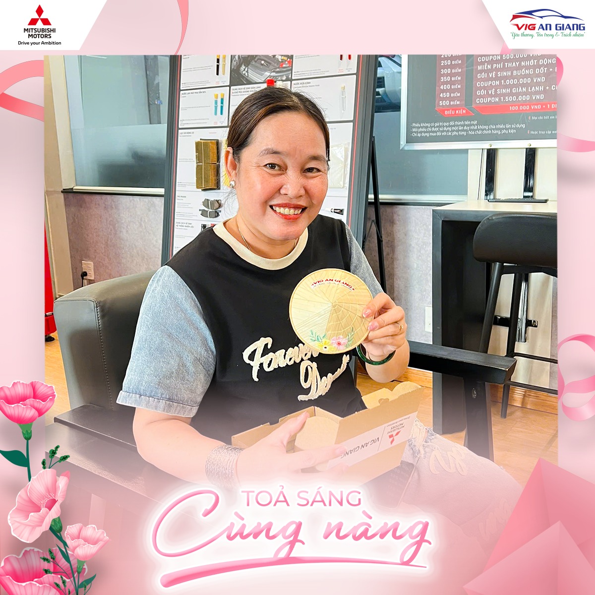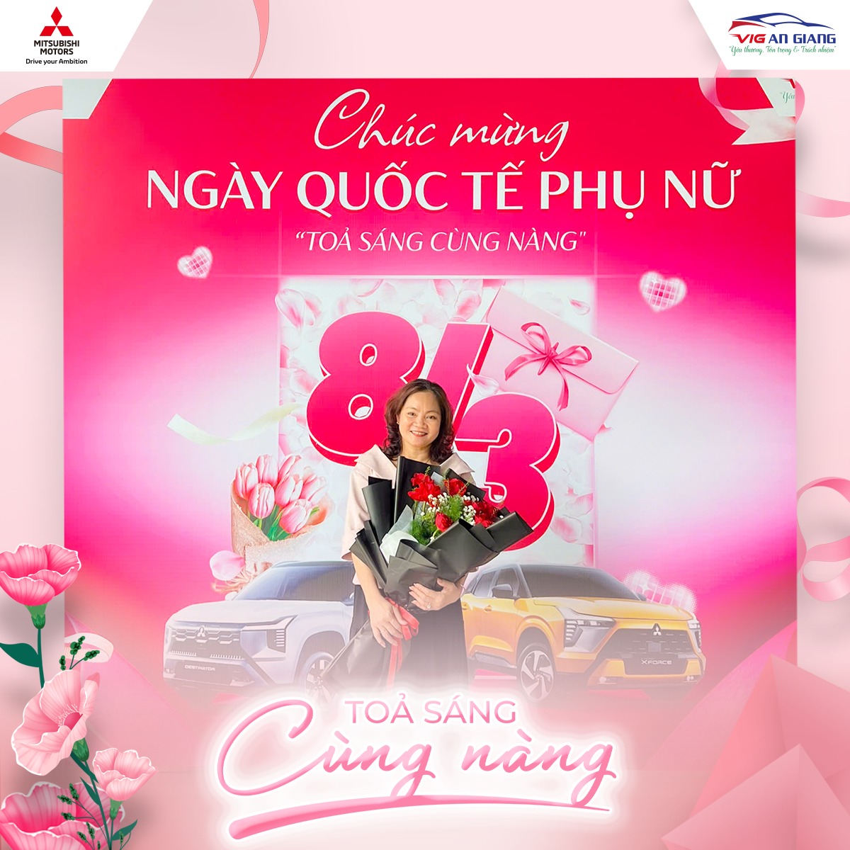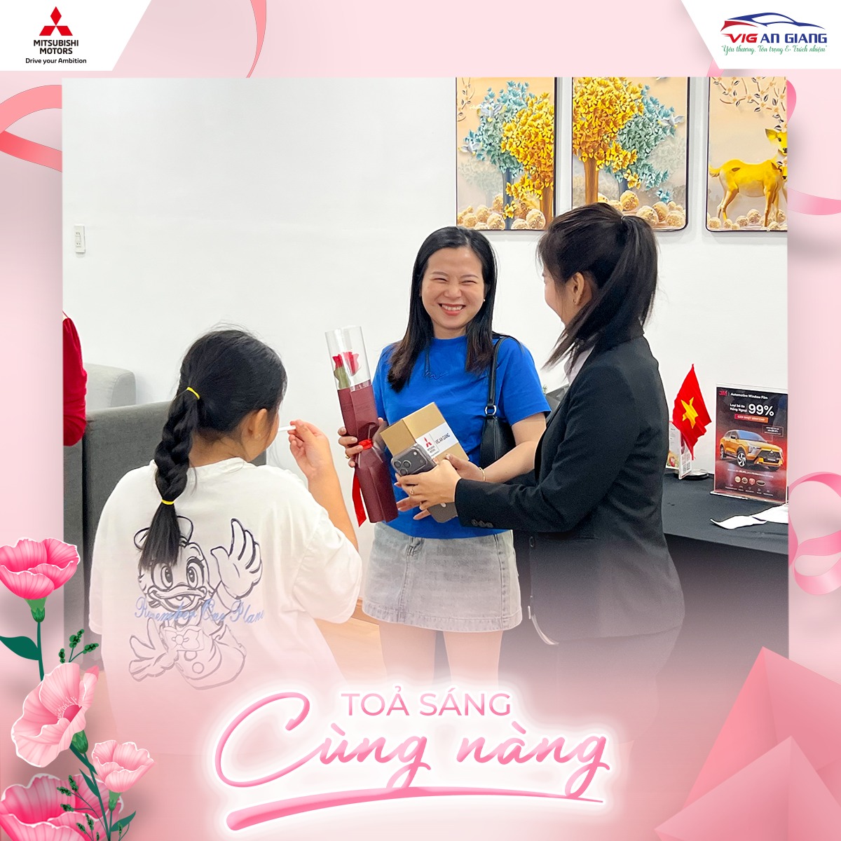 Ngày Quốc tế Phụ nữ 8.3 tại Mitsubishi VIG An Giang trở nên rực rỡ hơn với chương trình “Tỏa sáng cùng nàng”, nơi những vị khách nữ được chào đón bằng sự trân trọng và những trải nghiệm nhẹ nhàng, ý nghĩa.