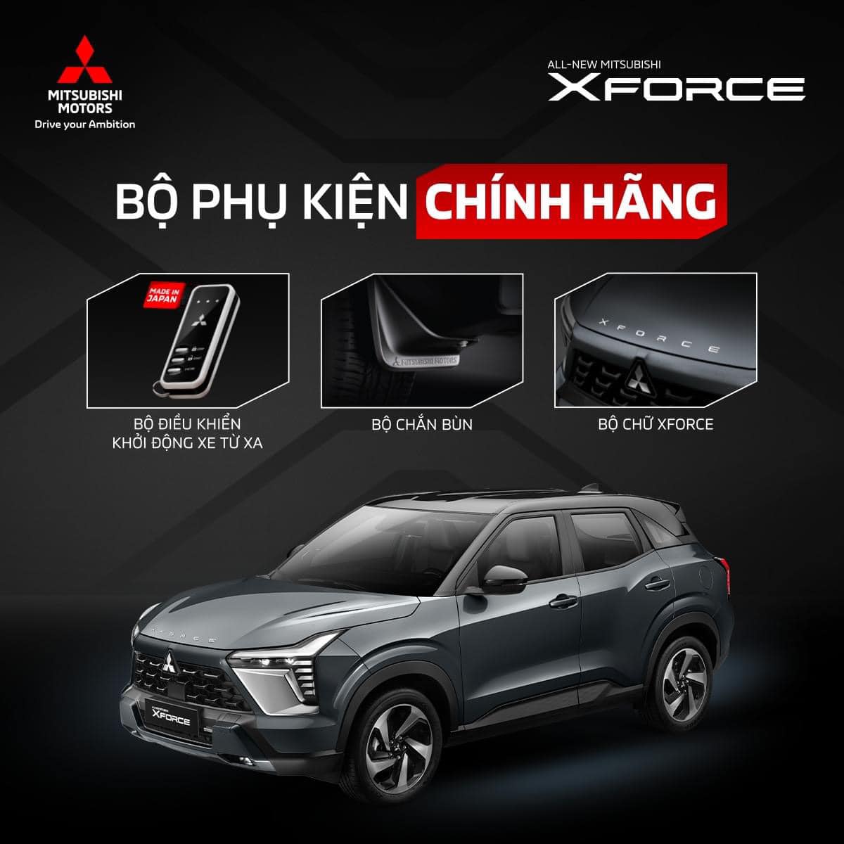 Từ đây đến hết ngày 30/06/2024, chủ xe All-New XFORCE nhận ngay ưu đãi hấp dẫn cho 3 món phụ kiện chính hãng: Bộ chữ mạ Chrome (XFORCE), Bộ chắn bùn và Bộ điều khiển khởi động xe từ xa.