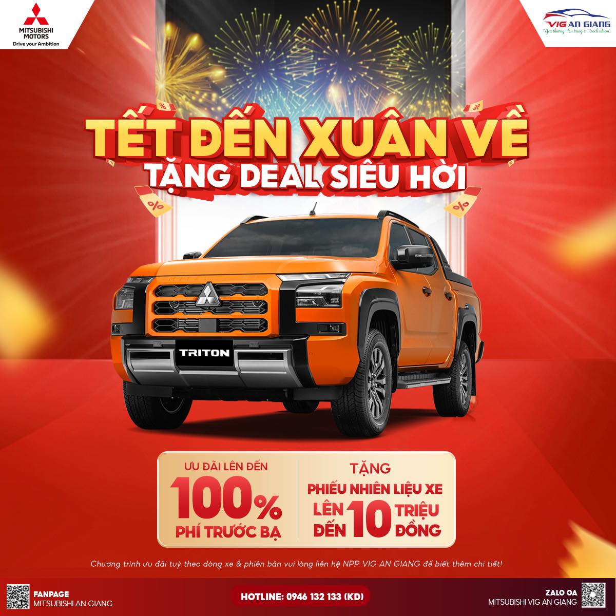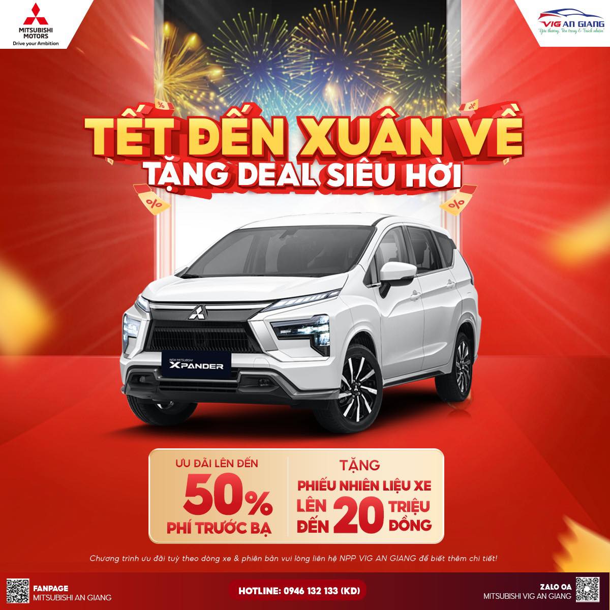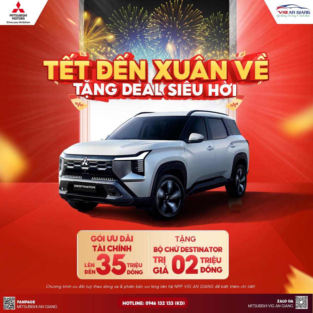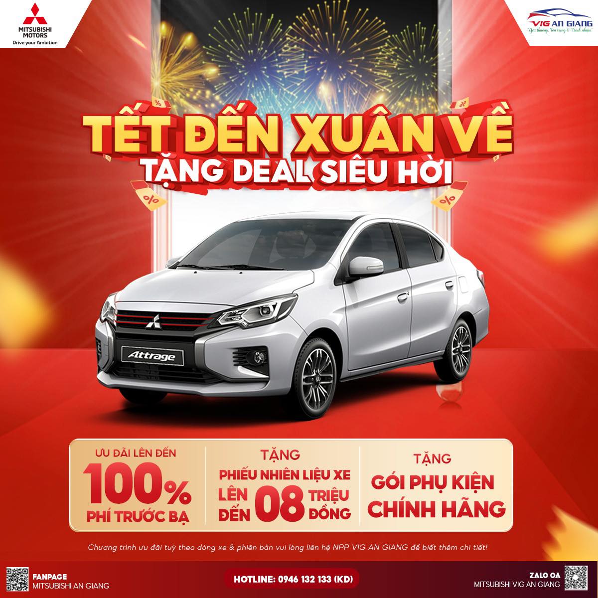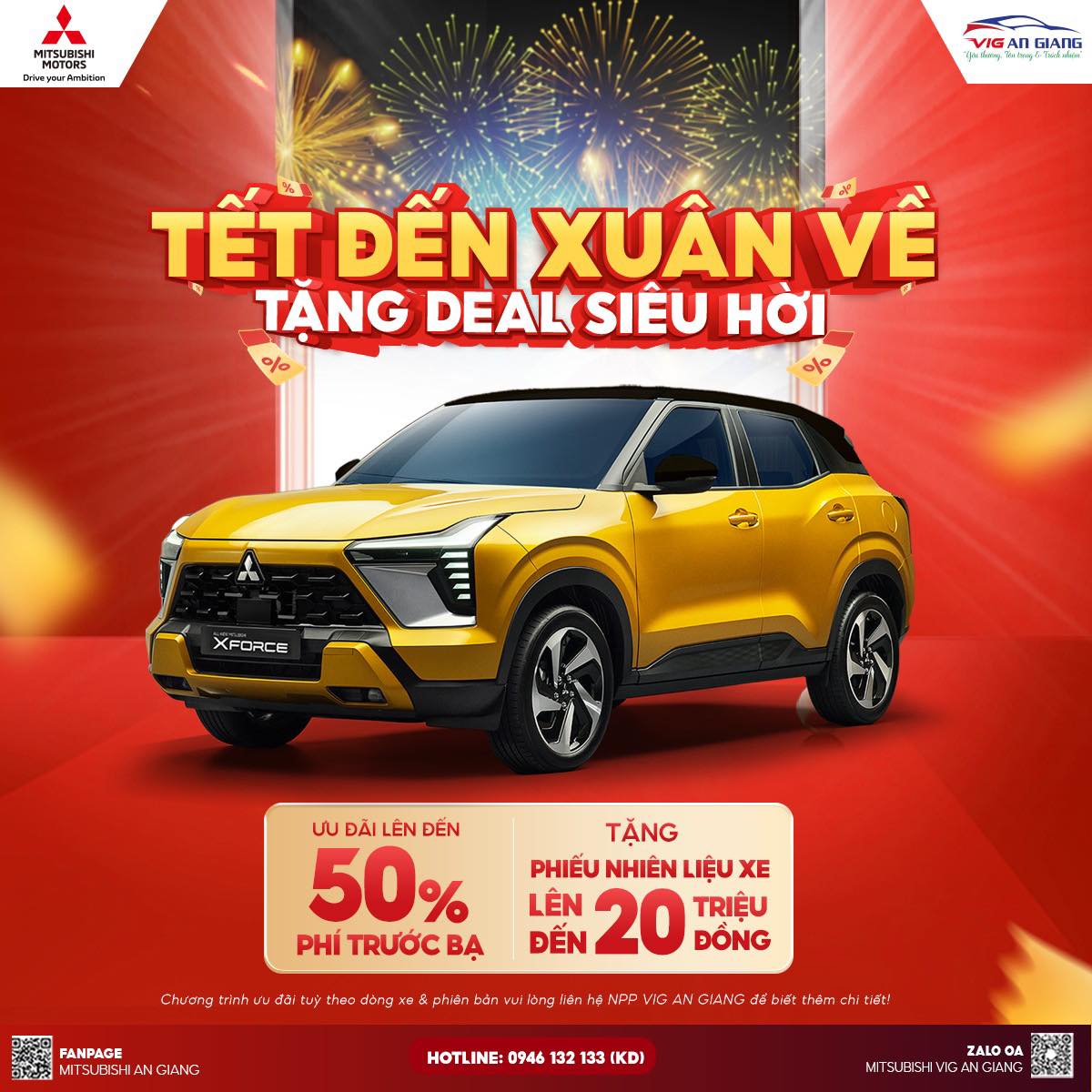Nhân dịp Xuân về, MITSUBISHI VIG AN GIANG triển khai chương trình ưu đãi đặc biệt, áp dụng cho nhiều dòng xe hot: Destinator, Xpander, Xforce, Attrage, Triton,… giúp Quý khách tối ưu chi phí lăn bánh và nhận thêm nhiều quyền lợi hấp dẫn.