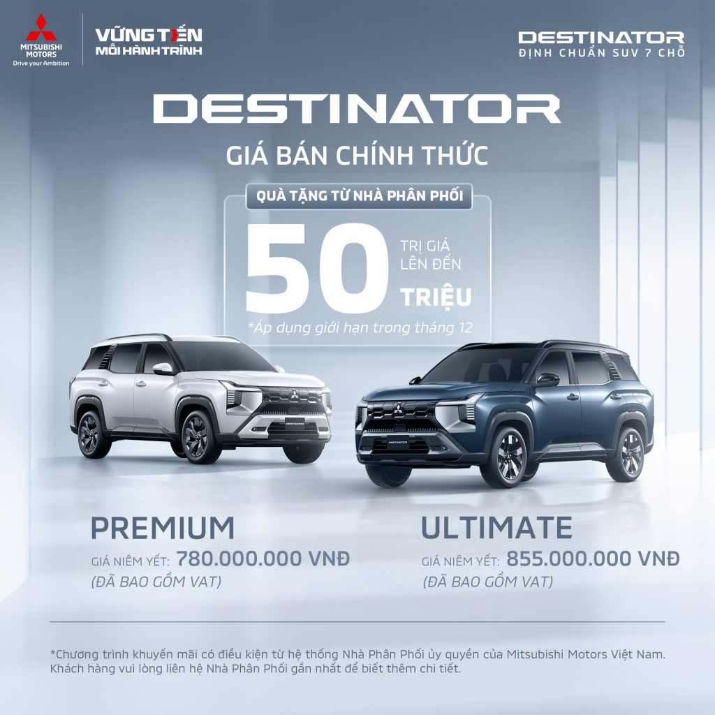 Tp. Hồ Chí Minh, ngày 1 tháng 12 năm 2025 – Mitsubishi Motors Việt Nam chính thức giới thiệu mẫu xe Mitsubishi Destinator – mẫu SUV 7 chỗ đích thực, được định vị ở phân khúc thị trường hoàn toàn mới và độc đáo dành cho khách hàng Việt Nam. Destinator được phát triển từ […]