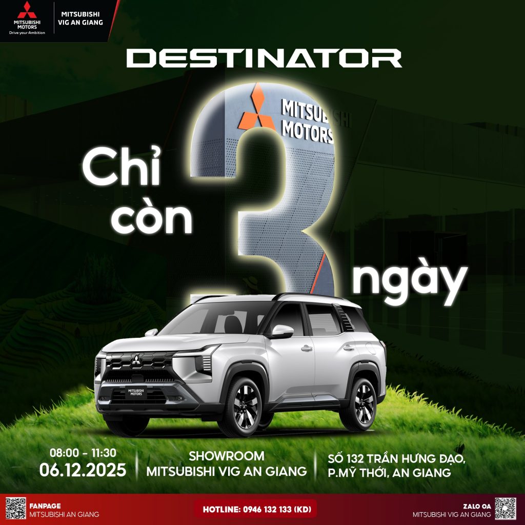 SUV 7 chỗ hoàn toàn mới – chuẩn “Đỉnh chất – Đỉnh tiện nghi” – đã có mặt tại MITSUBISHI VIG AN GIANG cùng ưu đãi cực hấp dẫn trong tháng 12! BẢNG GIÁ CHÍNH THỨC DESTINATOR • DESTINATOR Premium – 780 triệu • DESTINATOR Ultimate – 855 triệu 𝐔̛𝐔 Đ𝐀̃𝐈 Đ𝐀̣̆𝐂 𝐁𝐈𝐄̣̂𝐓! 𝐃𝐔𝐘 𝐍𝐇𝐀̂́𝐓 […]